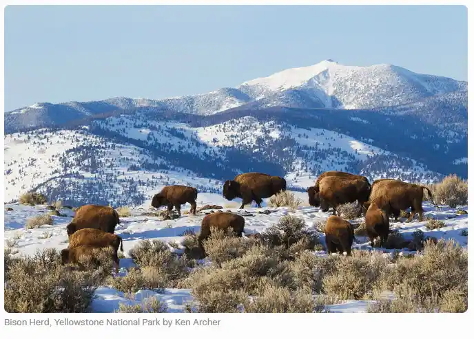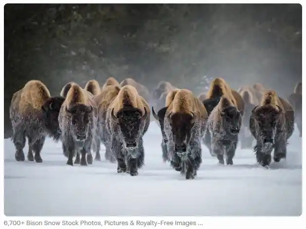 Here’s another evocative scene of bison in their snowy domain, highlighting the herds we must protect for future generations.